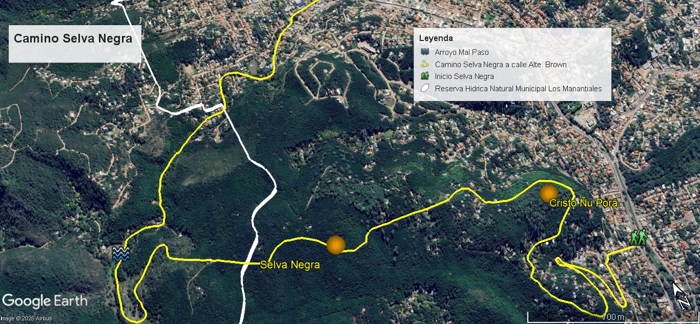 • Trazado: por calle 9 de Julio (camino vehicular) hasta A° Mal Paso y calle Alte. Brown.